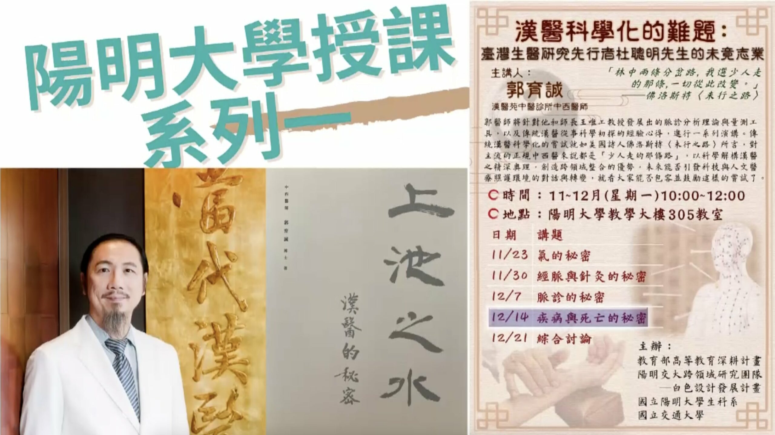 錄製日期:2020年11月15日 講解主題:傷寒雜病論的脈法-平脈法與經方的應用脈診儀應有的客觀指標 請先 登入。 標籤# 傷寒雜病論# 基礎# 應用# 經脈# 脈診儀# 高畫質 分享此文章: 在 電子郵件 分享 在 Facebook 分享 在 Line 分享 複製至剪貼簿 上一 文章 課程:脈診的科學原理-從內難經脈法到二十八脈與脈診血壓計的設計 下一 文章 課程:桂林古本的病理與藥理-傷寒雜病論十三稿體系與臨床應用:對偶反矩陣